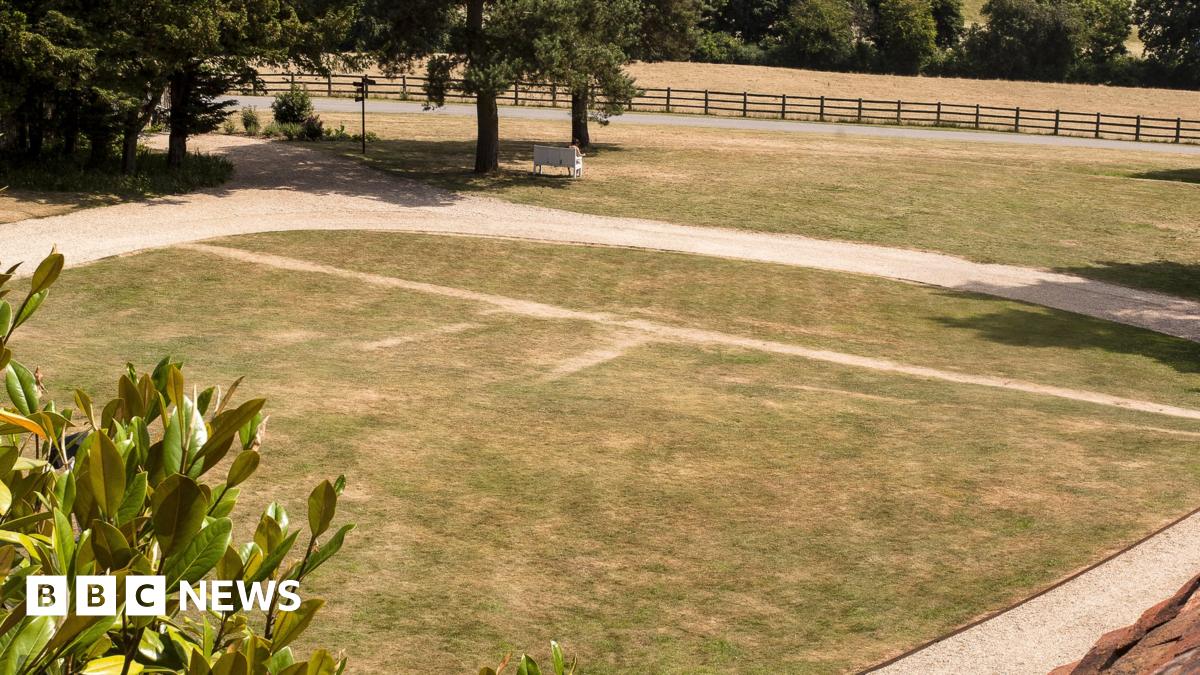 The heatwave has revealed the site of former buildings at a 16th-Century mansion in Oxfordshire through severely parched areas of grass.