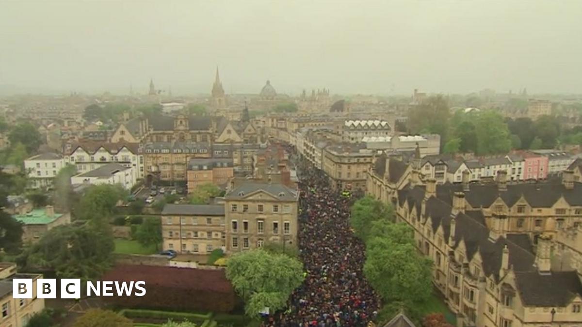 They gathered from 06:00 BST to listen to Hymnus Eucharisticus being sung from Magdalen College tower.