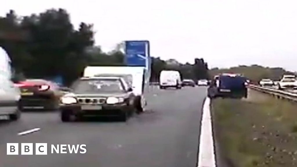 M40 crash: Caravan travels wrong way on motorway