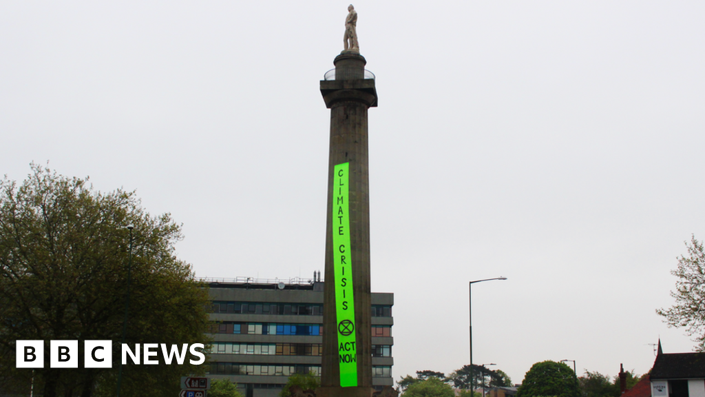 The 20m (65ft) long sign, reading "Climate Crisis Act Now", was hung on Lord Hill's Column in Shrewsbury on Tuesday.