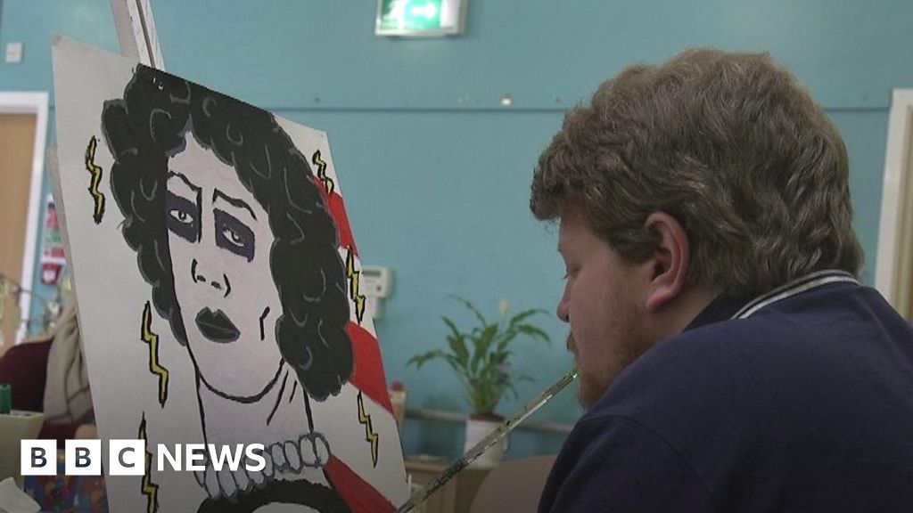 Philip Hood paints his musical heroes with his mouth at St John's Hospice.
