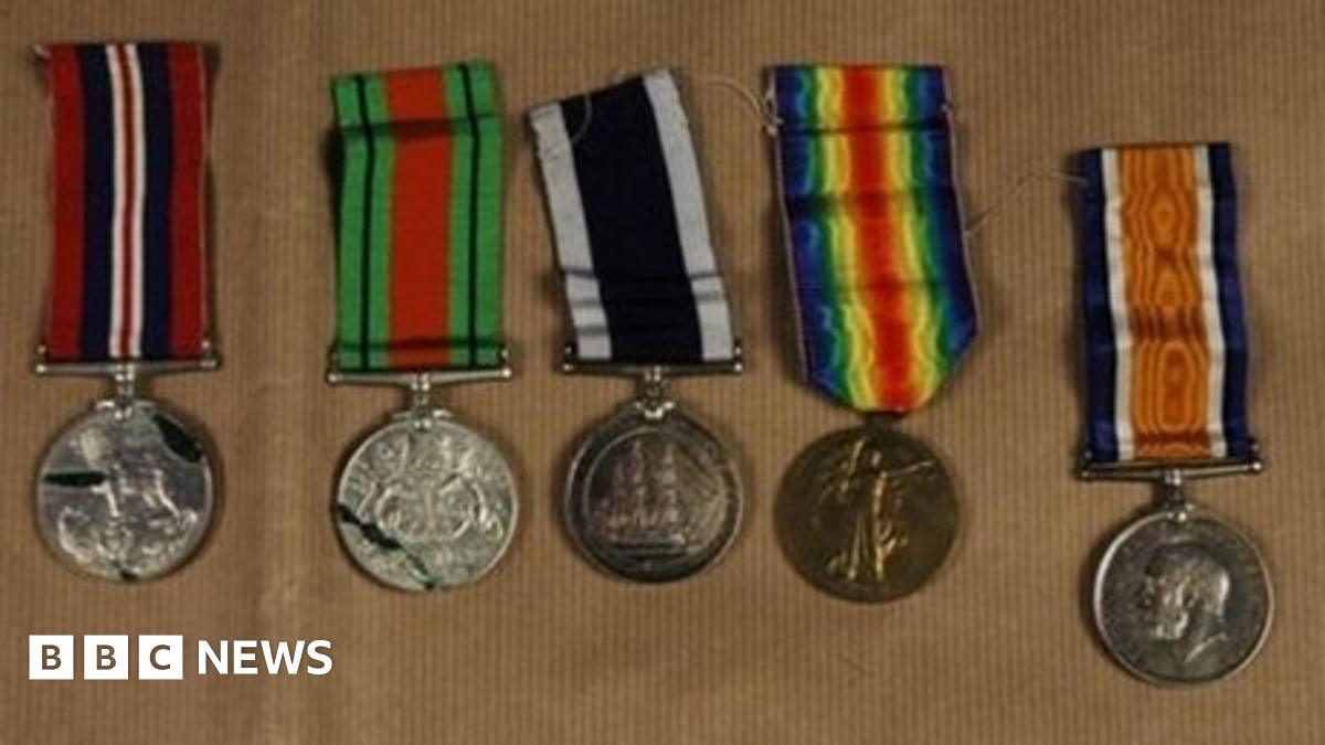 The honours include two World War I medals, two World War II medals and an undated naval long service medal relating to HMS Greenwich.