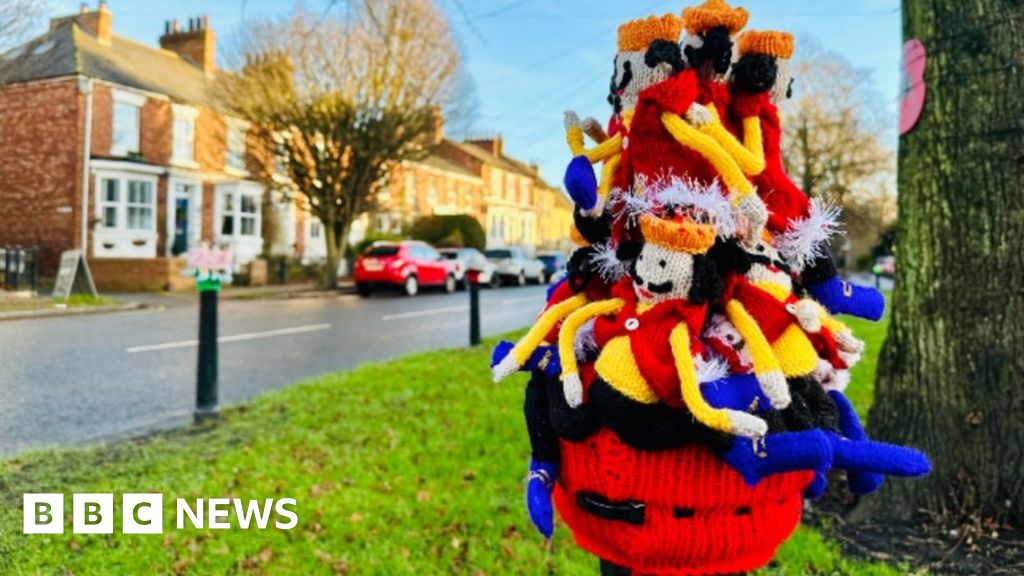 The Haughton Ladies Who Knit, from Haughton-le-Skerne, near Darlington, have brightened up its dreary bollards with festive spirit.