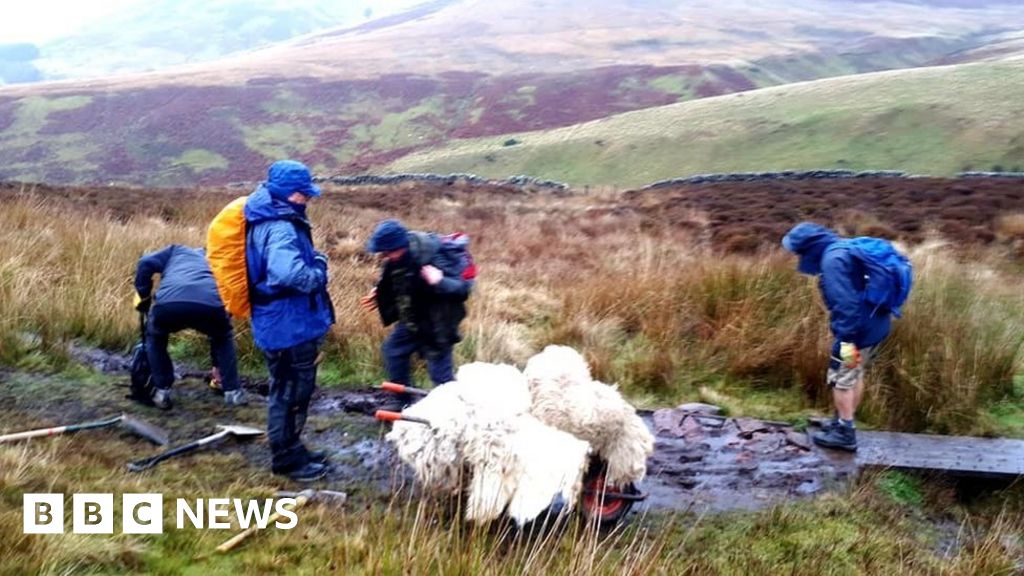 Ian CombeIan Combe, a member of Friends of the Pentlands, told the BBC Scotland news website how the group used wheelbarrows to transport the fleeces to the eroded site.