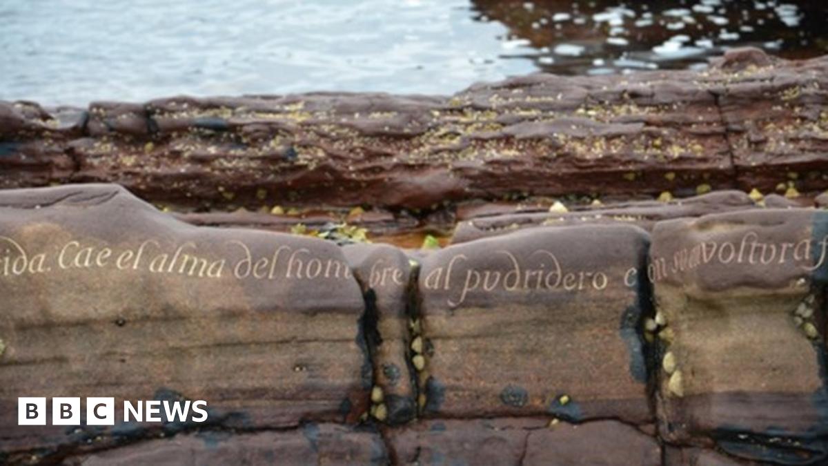 Words from a poem by Chile's greatest poet have been carved into rock in Caithness