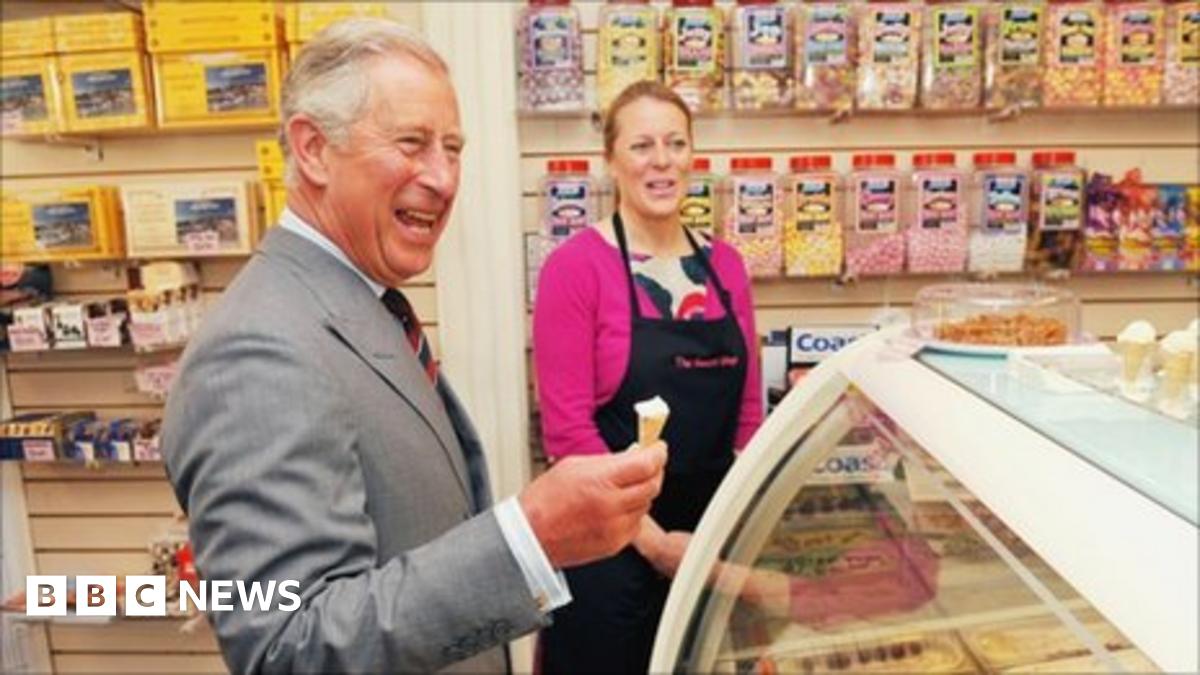 The prince spoke to business owners, including Angela Knox, the owner of Aberdyfi Ice Creams.