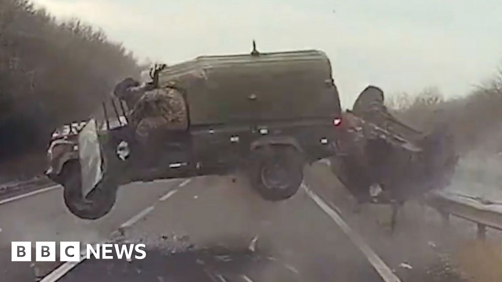 Dashcam video showed the moment a 4x4 and its trailer rolled multiple times through the air on an A-road.