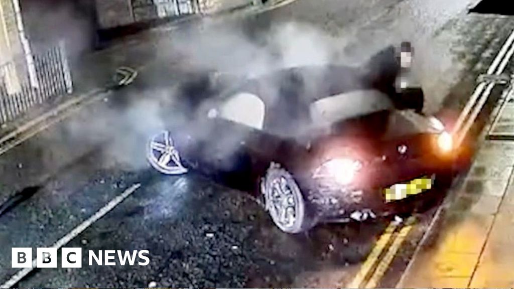 This was the scene as a BMW Z4 span out of control and smashed into a house.