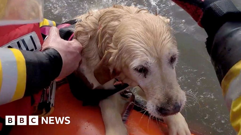 This was the moment a lifeboat crew brought three-year-old golden retriever Seren to safety after she darted into the water at Newton Beach, Porthcawl, Bridgend county.
