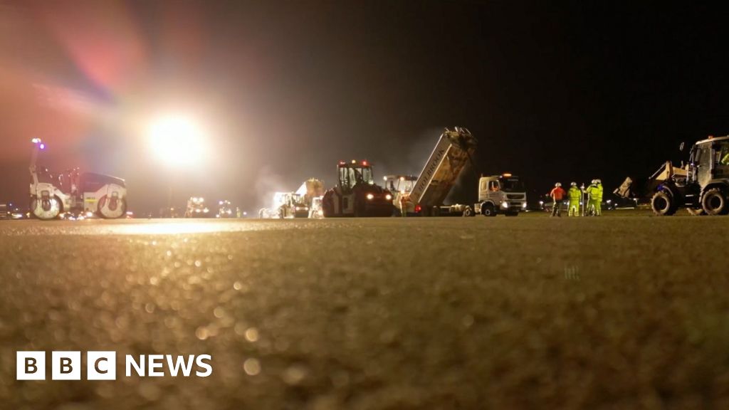 Timelapse captures resurfacing of Luton Airport runway