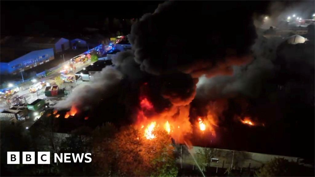 Watch: Aerial footage shows recycling centre fire