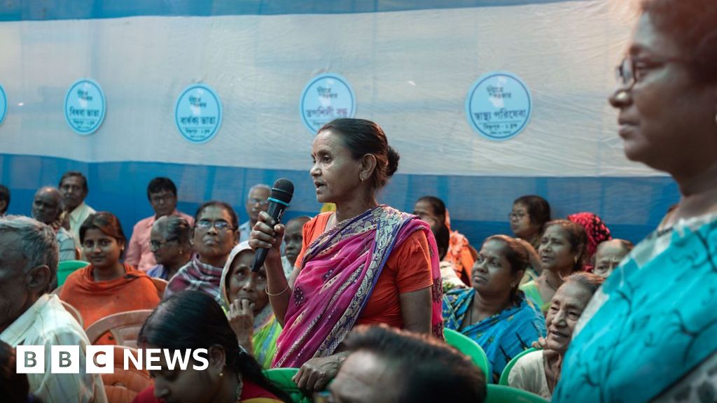 More than 100 people turn up at a festive welfare delivery camp in West Bengal state where people apply for handouts and register complaints.