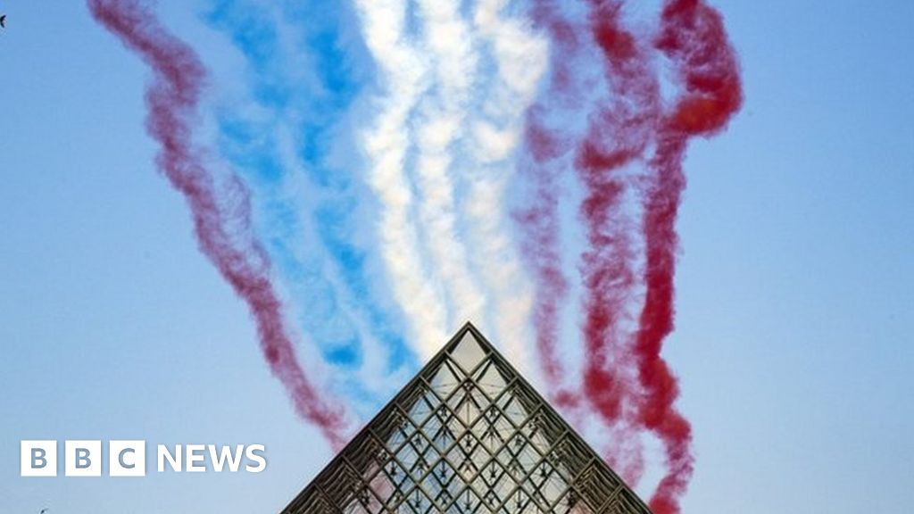 EPA... and over the Louvre art museum. But the magnificent view was slightly marred by an apparent mix-up of colours representing the French flag.