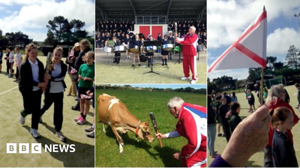 During its final day in Jersey the baton was entertained by a brass band and met a Jersey Cow