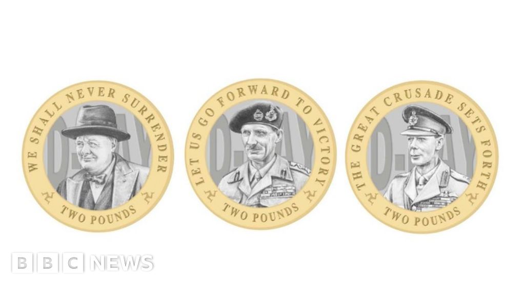 The two-pound pieces, featuring three key figures from World War Two, will be minted to mark the 75th anniversary of the D-Day landings.