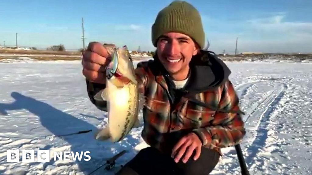 'Ice fisherman' catches fish on BBC News