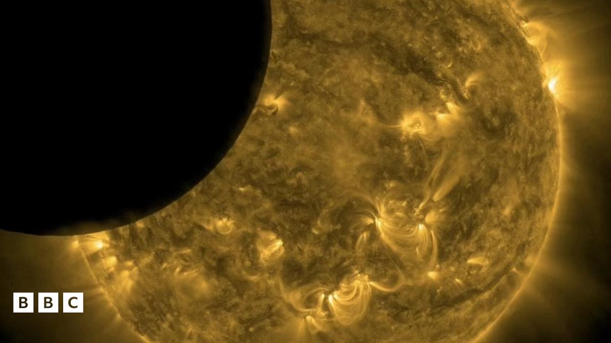 Check out these incredible pictures of the Moon moving across the Sun! They were captured by Nasa's Solar Dynamics Observatory. This eclipse was not visible here on Earth.