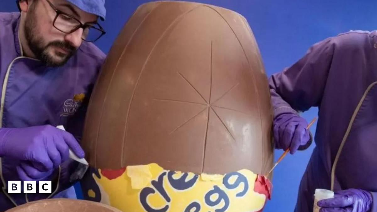 It's real chocolate but sadly nobody gets to eat the egg. Instead it will be on display at Cadbury World's chocolate-making zone until 27 April.