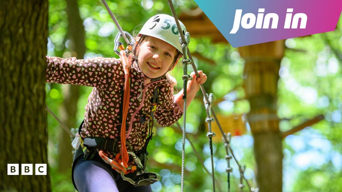 a girl on a treetop adventure park.Image source, Getty Images
