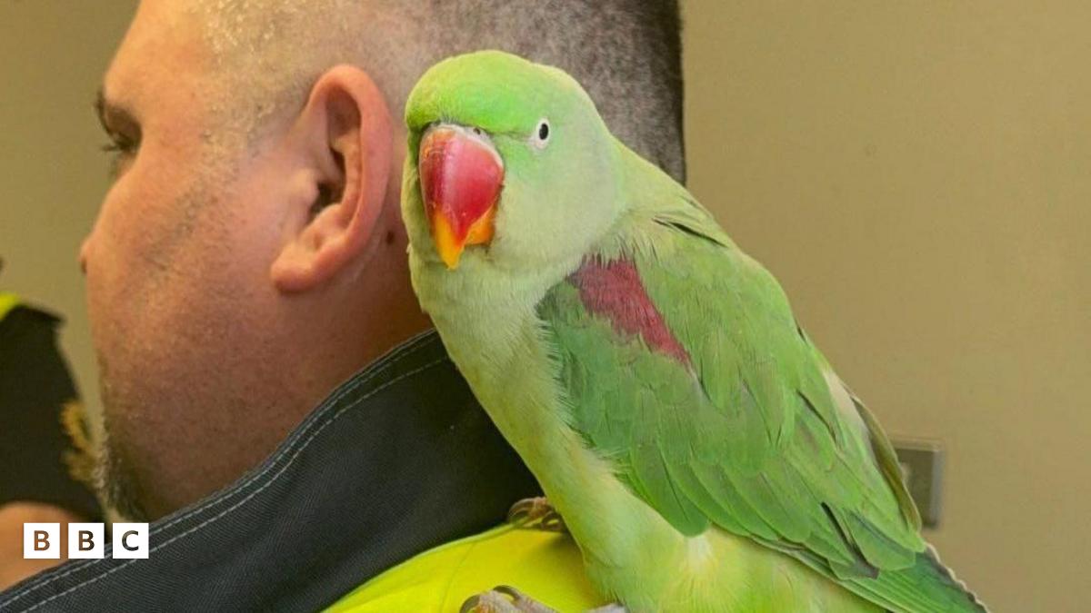 The brightly coloured Alexandrine parakeet was discovered near Terminal One by airport police on Easter Sunday.