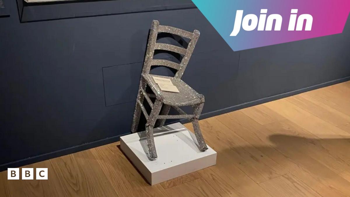The art piece is a sparkly bejewelled chair that was built by Italian artist Nicola Bolla.