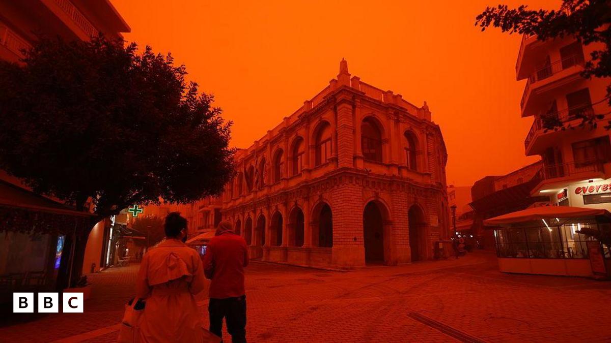 The skies in Crete have turned red and orange from a Saharan dust storm