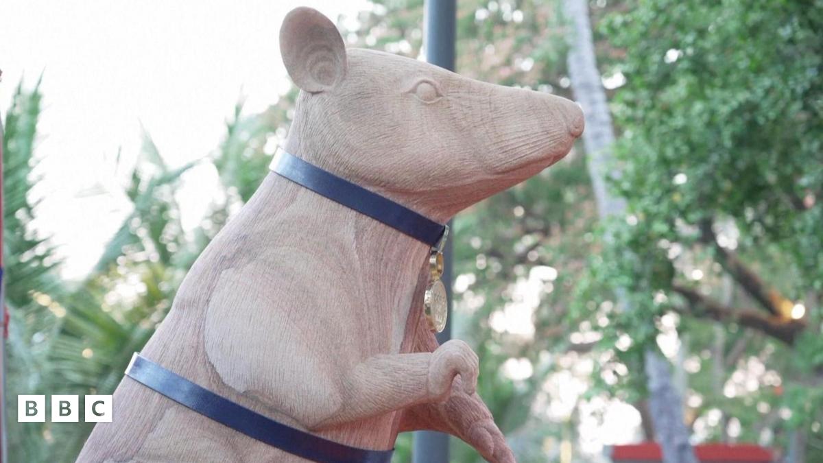 The statue has been built in honour of Magawa, a famous African giant pouched rat with a medal-winning "amazing sense of smell".