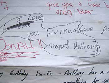 Fionualla still has the note from her birthday in '97. You can see it right here in her photo gallery...