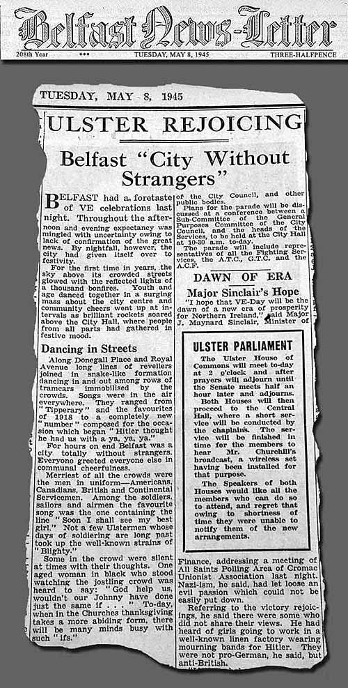 But their joy was stopped short when a boy from the street shouted "You're not allowed here". This was because Lois's parents were from the South of Ireland. There was a feeling in some quarters during the war that the South of Ireland was sympathetic towards Germany...