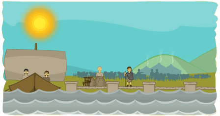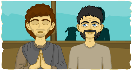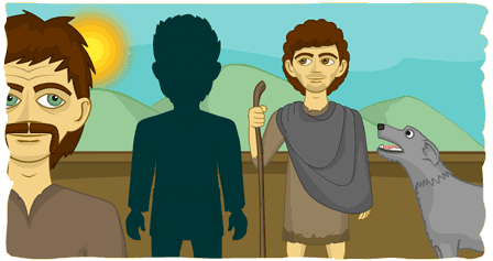Bhuel, mo chairde lomracha, ní thig liom gan aird a thabhairt air seo – teachtaireacht atá ann ó aingeal darb ainm Victoricus. Tá sé i ndiaidh a rá liom go gcaithfidh mé dul ar ais chuig mo thír dhúchais agus go bhfuil bád ag fanacht liom. Tá mé buartha go gcaithfidh mé sibh a fhágáil, a chairde – tá tréan ama caite againn i gcuideachta a chéile ar an mhullach sléibhe seo agus crothnóidh mé sibh. (le brón) Slán agaibh.
