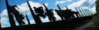 Dancer in the Dark is billed as a musical. It's the story of Selma (Björk), a Czech immigrant, and single mother working in a factory in rural America. Her salvation is her passion for music, specifically, the all-singing, all-dancing numbers found in classic Hollywood musicals. Selma harbours a sad secret: she is losing her eyesight and her son stands to suffer the same fate if she can’t put away enough money to secure an operation for him. When a neighbour falsely accuses Selma of stealing his savings, the drama of her life escalates to the tragic finale.  | | Pardon me boys - Is this the Chattanooga choo-choo? |