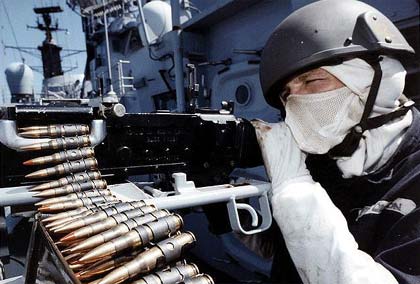 man aiming gun