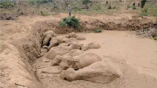 دغه فیلان د اوبو څښلو لپاره راغلي وو چې د خټو په دې ډنډ یا کندې کې ولوېدل، وروسته بیا د سیمه ییزو بزګرو لخوا د رسیو په مرسته له دې کندې راویستل شول.