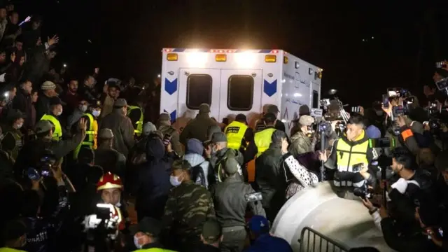 یوه عیني شاهد رویټرز خبري اژانس ته وویل، مرستندویان د بلډوزرو په وسیله څاه ته څېرمه یوه کنده وايستله چې بیا له همدې لارې تونل ډوله سوری جوړ او ماشوم ته ورسېدل.