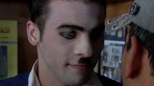 هماغسې توره دريشي، ځانګړې خولې او تر پوزې لاندې لنډکي بريتونه. هماغسې غلی او خبرې نه کوي خو په پټه خوله داسې حرکتونه کوي چې نندارچیان يې په اسانه پيغام درک کوي.