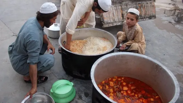 دا عکسونه چې د کندهار ښار په یوه جومات کې اخیستل شوي د ډېرو نورو ورته روژه ماتو بېلګه ده. په کندهار کې د بي بي سي خبریال مامون درانی وايي دغلته شتمن په جوماتونو کې د روژه ماتې لګښت ورکوي او عام خلک کولی شي ورشي او همالته ډوډۍ وخوري.