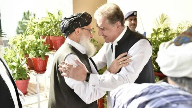 په یوه ویډیو کې طالب مرکچیان لیدل کېږي چې د یوې ودانۍ مخې ته یې د پاکستان دبهرنیو چارو وزیر شاه محمود قریشي او د استخباراتو مشر جنرال فیض حمید هرکلي ته ولاړ دي او په غېږ ورسره روغبړ کوي.