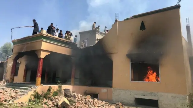 په ویډيو کې ښکاری چې خلک کورونو ته پر اور اچولو سربېره د دودانیو ړنګولو هڅه هم کوي.