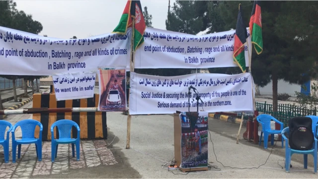 د افغانستان شمالي بلخ ولایت کې لسګونه اعتراض کوونکو د حیرتان بندر لاره تړلې ده او وايي تر هغه چې تښتول شوی ماشوم د انسان تښتوونکو له منګولو خلاص نه شي لاره به همداسې تړلې وي.