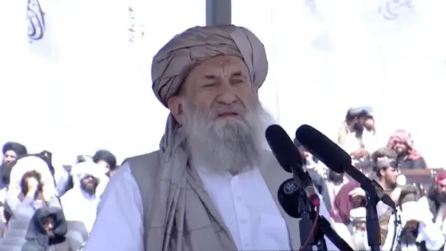 د طالبانو لومړي وزیر ملا محمد حسن اخوند د چارشنبې په ورځ د پروان بګرام کې د امریکايي ځواکونو د وتلو یو کال پوره کېدو په مناسبت جوړې شوې غونډې ته وویل، نړیوال باید ستونزې جوړې نه کړي: