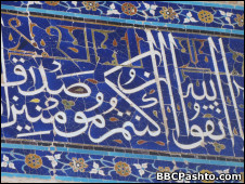 ''تر ډېره حده ابی رنګونه، اسماني او لاجوردي رنګونه په کاشي او مینیاتورکارۍ کې استعمال شول. د طبیعي رنګونو ترڅنګ نوي رنګونه جوړ شول چې تخنیک یې اوس له لاسه تللي. د معدني موادو نه د رنګونو جوړول هم مهمه خبره ده . تر ټولو مهم یې د رنګونو امتزاج دی. یعنې هغه رنګونه چې دوی سره یوځای کړي دي هم سره متفاوت دي لکه سره او ابي چې څنګ په څنګ په کې راغلي، خو دغه تفاوت خپله یوه هماهنګي رامنځ ته کړې.''