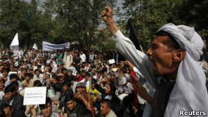 مظاهره کوونکو 'مرګ پر امریکا' چیغې وهلې او پر هغو کسانو یې هم د مرګ نارې وهلې چې پیغمبر ته یې دغه سپکوونکی فلم جوړ کړی دی.
