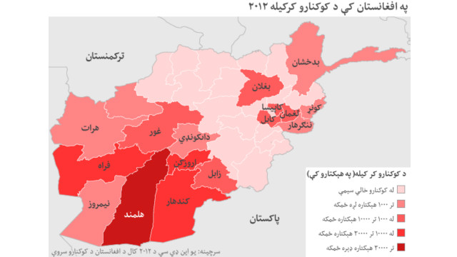 د ملګرو ملتونو او افغان حکومت شمېرې ښيي چې په ۲۰۱۲ ال کې د کوکنارو زیاتره کښت ۹۵٪ د هېواد په لوېديځ او سوېلي ولایتونو کې و.