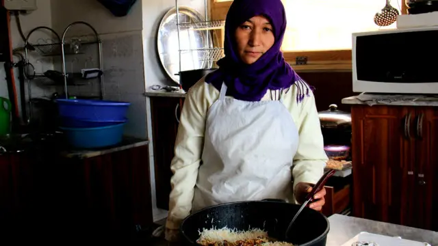 سکینه کاظمي د دغې رستوانټ سراشپزه ده، هغه وايي په کور کې چمتو شوي خواړه دغه پخلنځي ته راوړي.