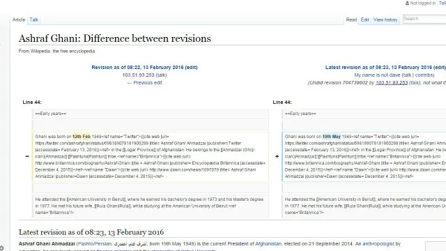 د هند لومړي وزیر ظاهراً د ولسمشر محمد اشرف غني د زوکړې د ورځې په اړه د آزادې ویکیپېډیا پر وېبپاڼې تکیه کړې ده.