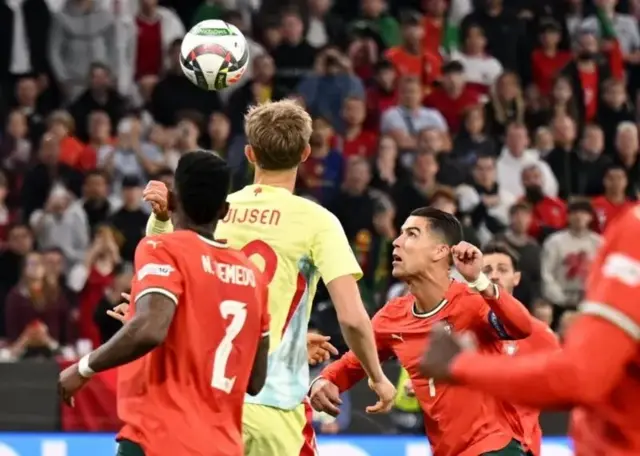 د فوټبال مشهور ستوري او د پرتګال لوبډلمشر کریستیانو رونالډو په ۶۱ دقیقه کې لوبه یو ځل بیا برابره کړه.
