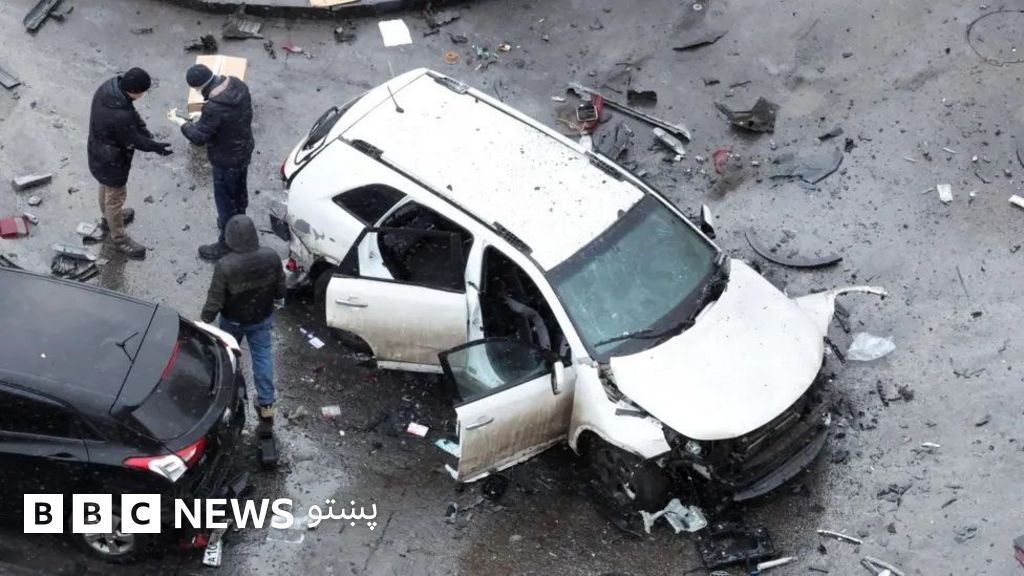 په سیمه کې اخیستل شوي انځورونه یو سخت زیانمن شوی سپین رنګه موټر ښیي چې دروازې یې ماتې شوې او په شاوخواکې یې نور موټرونه ولاړ دي.