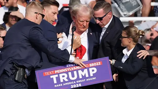 ښاغلی ټرمپ چې له ښي غوږ یې وینې بهېدلې او د مخ یو اړخ یې هم په وینو لړلی و، ملاتړو ته یې د بري د نښې په توګه خپل موټی خوځاوه.