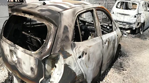 پنجشنبه ناوخته له جیت کلي پر ټولنیزو شبکو خپرو شویو تصویرونو کې لیدل کېږي چې کورونه او موټرونه د اور په لمبو کې سوځي.