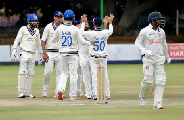 پر ځای یې راشد خان، ریاض حسن، فرید احمد، یمین احمدزی او عصمت عالم د زمبابوې پر وړاندې دویمه ټېسټ لوبه کې لوبېږي.